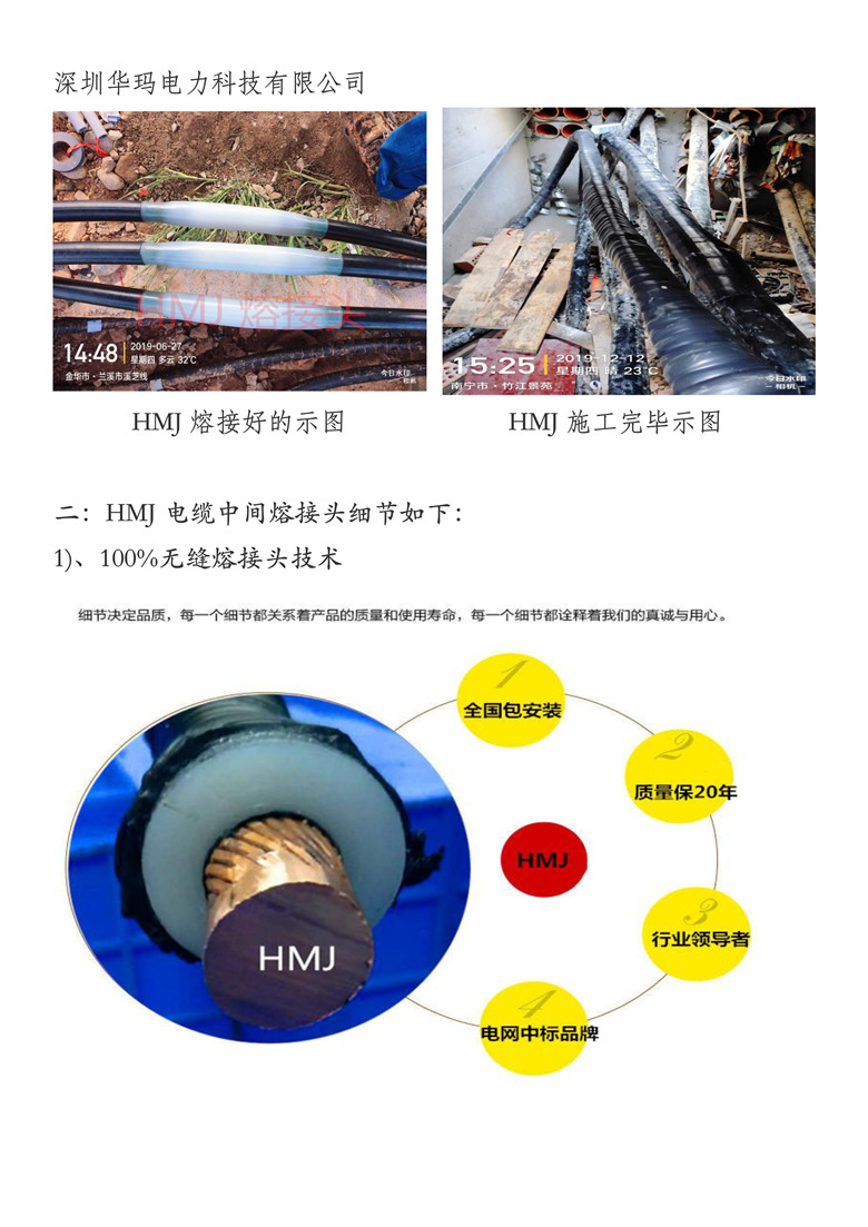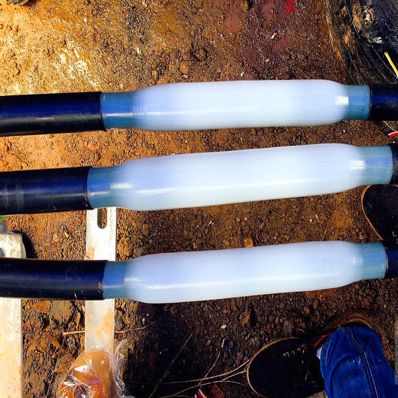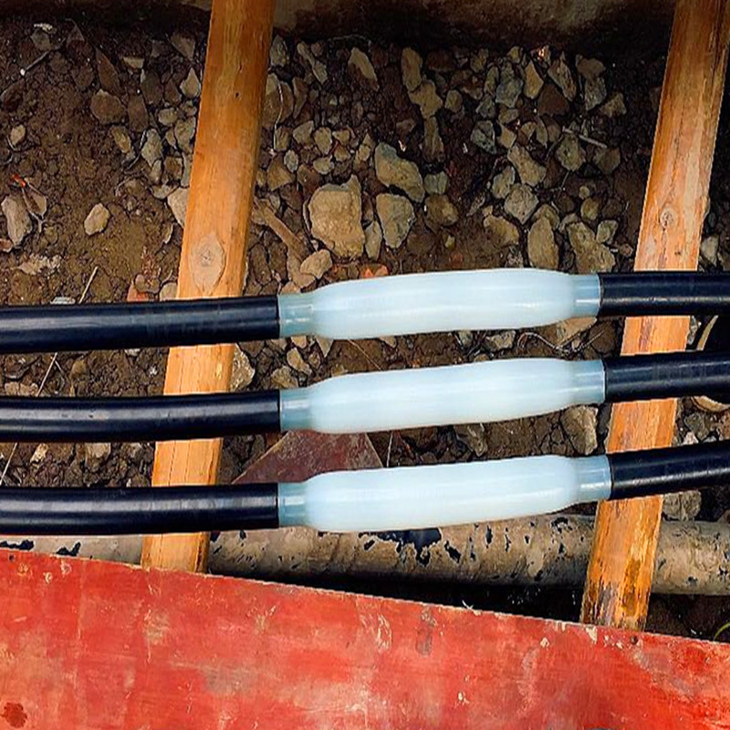 产品详情:目前,电缆的中间连接一般使用热收缩,冷收缩和预制的方法,全部用到应力锥或应力管来操纵分散电场的分布,以实现电缆的精确运行。电缆接头与电缆的绝缘材料不一致,并且两者之间存在活动接口,并且存在电缆绝缘收缩或引致电缆接头主体移位的隐患。由于电缆附件一般而言用到应力锥或应力管方式,因此其电场分布与电缆本身的电场分布不一致。在电场和热场的作用下,界面处产生细微的气隙和杂质极化,引致局部放电和击穿。热熔电缆接头对电缆导体使用等径焊接,其内外导电屏蔽层和绝缘层按原有的电缆结构恢复,日益恢复电缆结构,使电缆恢复到原本的结构状况,在实际上应用中,电缆的安全性和可靠性远远优于已安装的电缆附件。电缆主体结构的恢复和恢复,使电场分布越来越安定均匀,具更高的电气安全可靠性和极长的使用寿命。